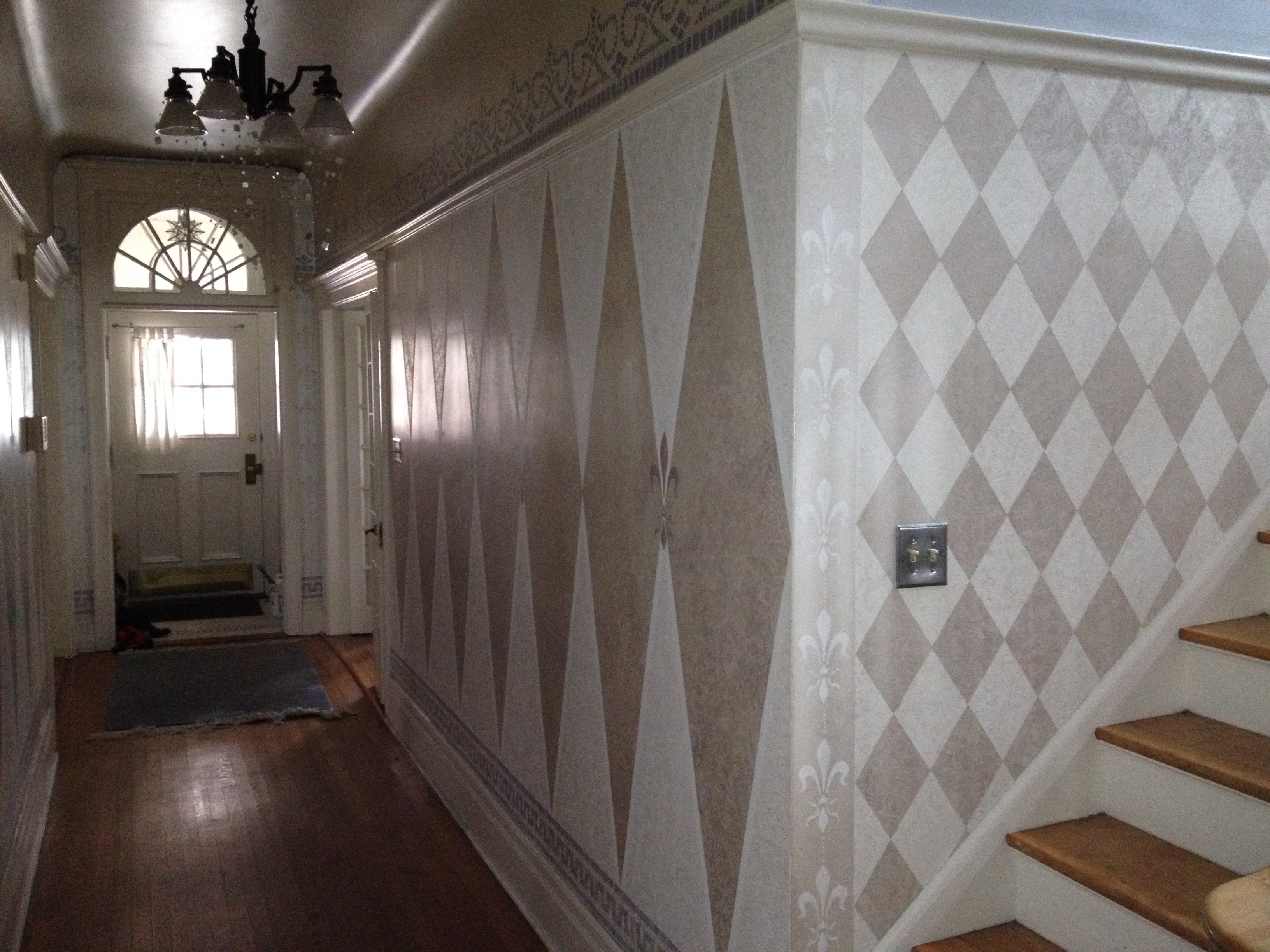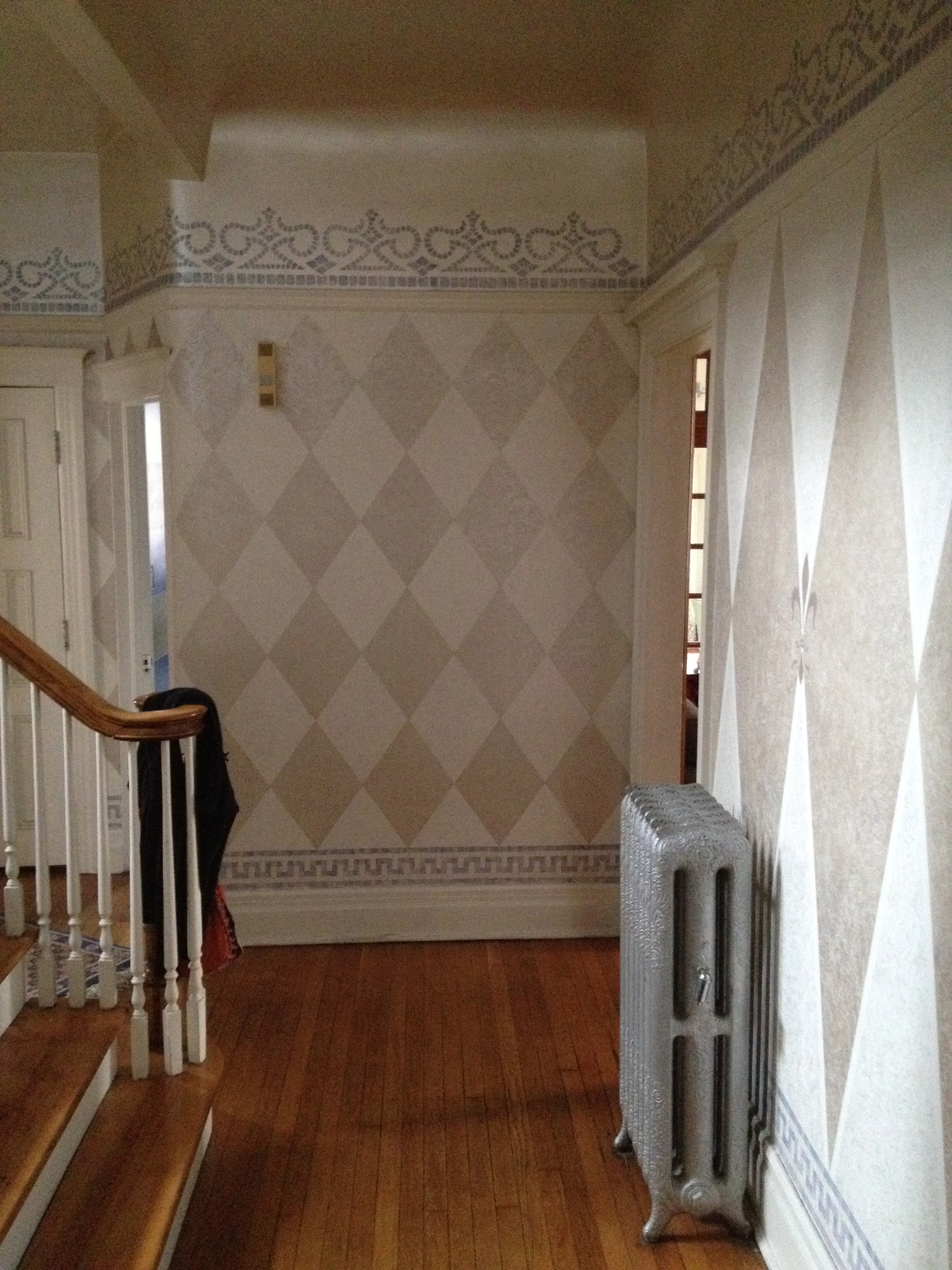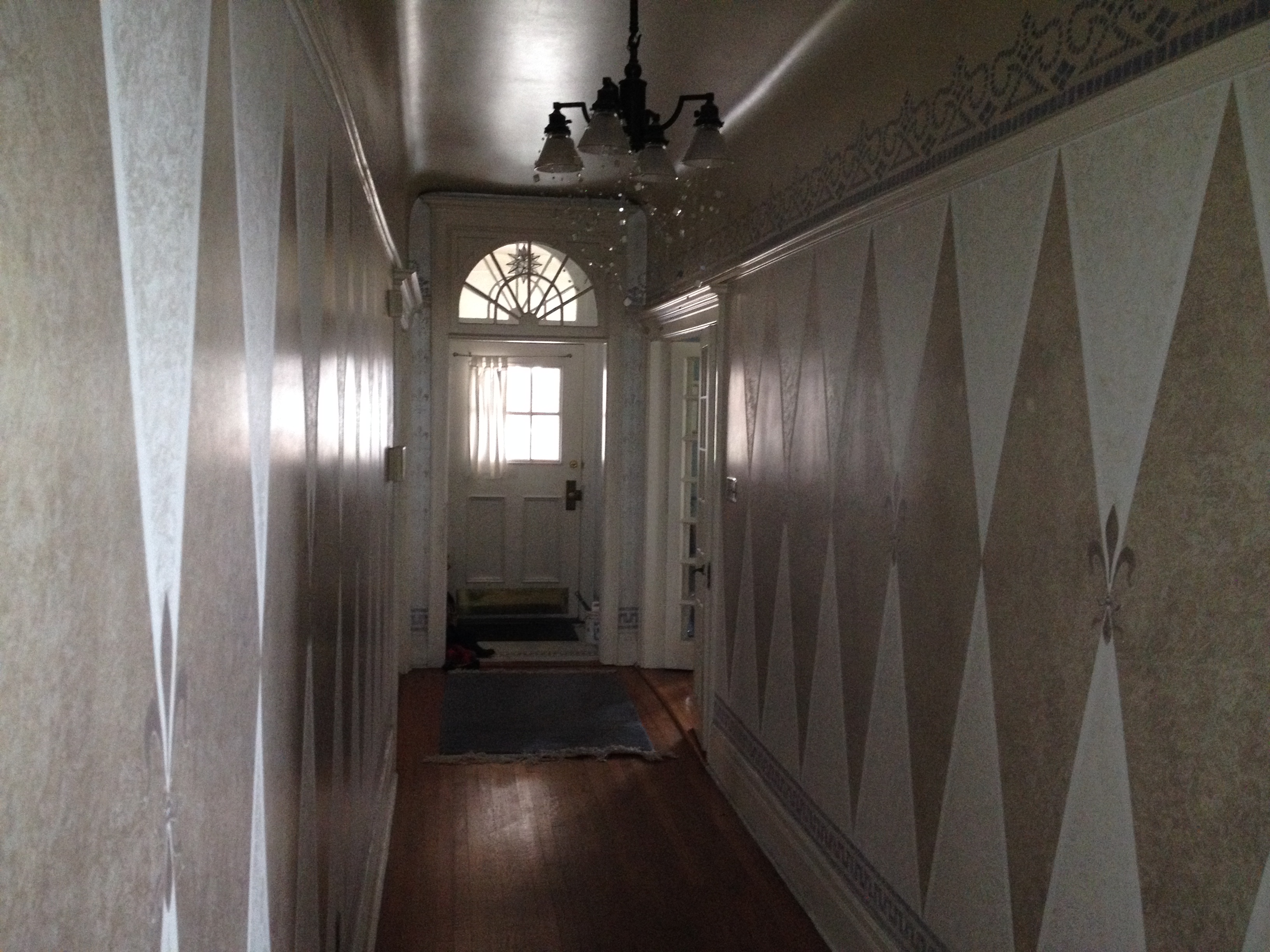 Built in 1914, this house is amazing. It features an iridescent-glazed Pewabic tile fireplace, and several of the rooms have bi-fold french doors to separate it from the main hallway. Our friend Tracy, (she has since “retired”) made all the plaster repairs and painted the hallway.