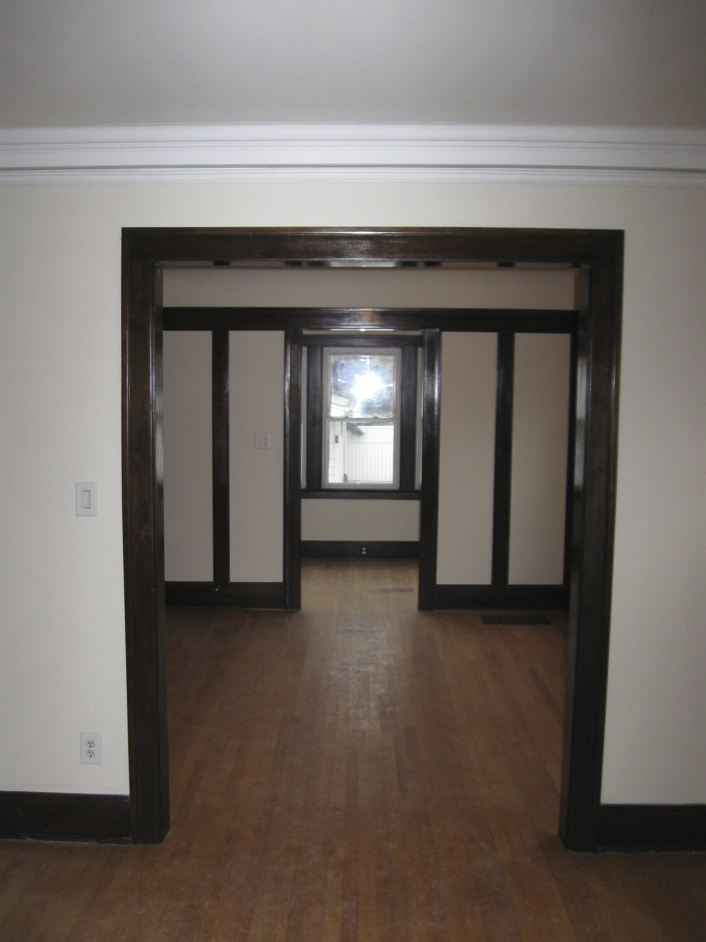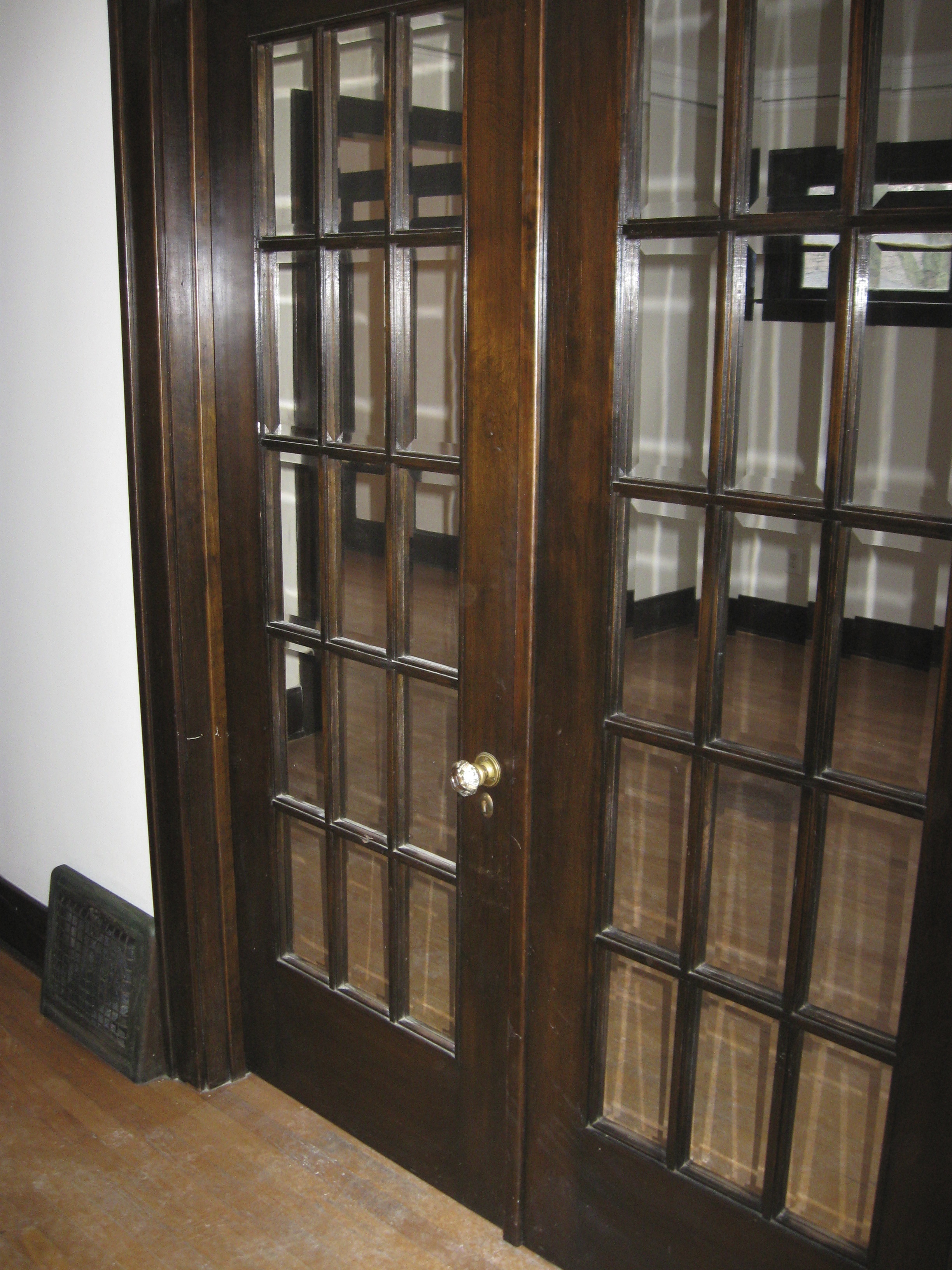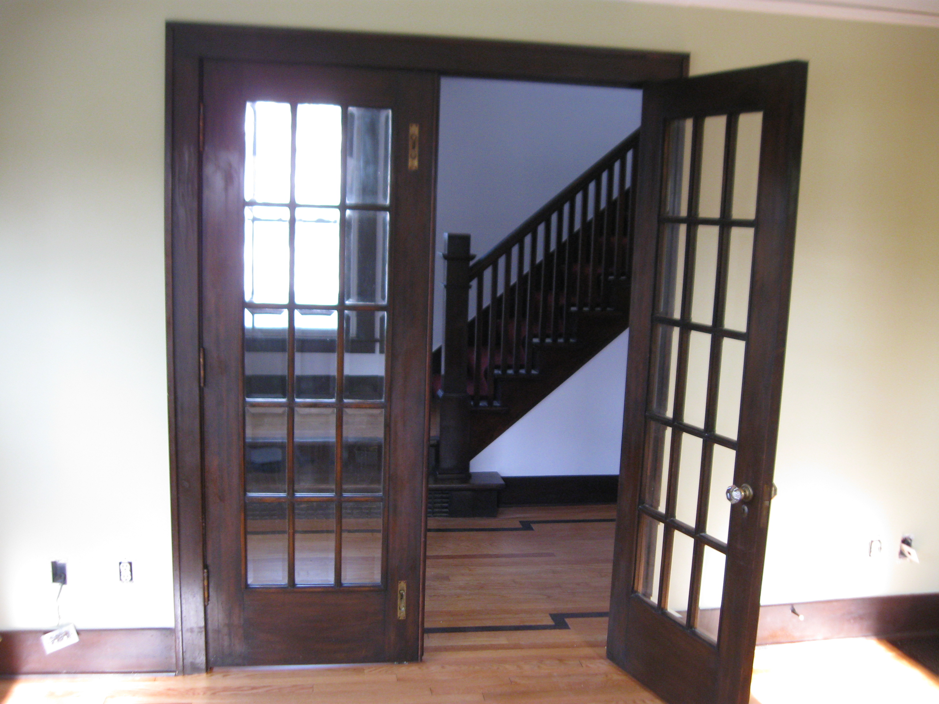Mahogany is nice, beveled glass french doors, original glass doorknobs, cool.