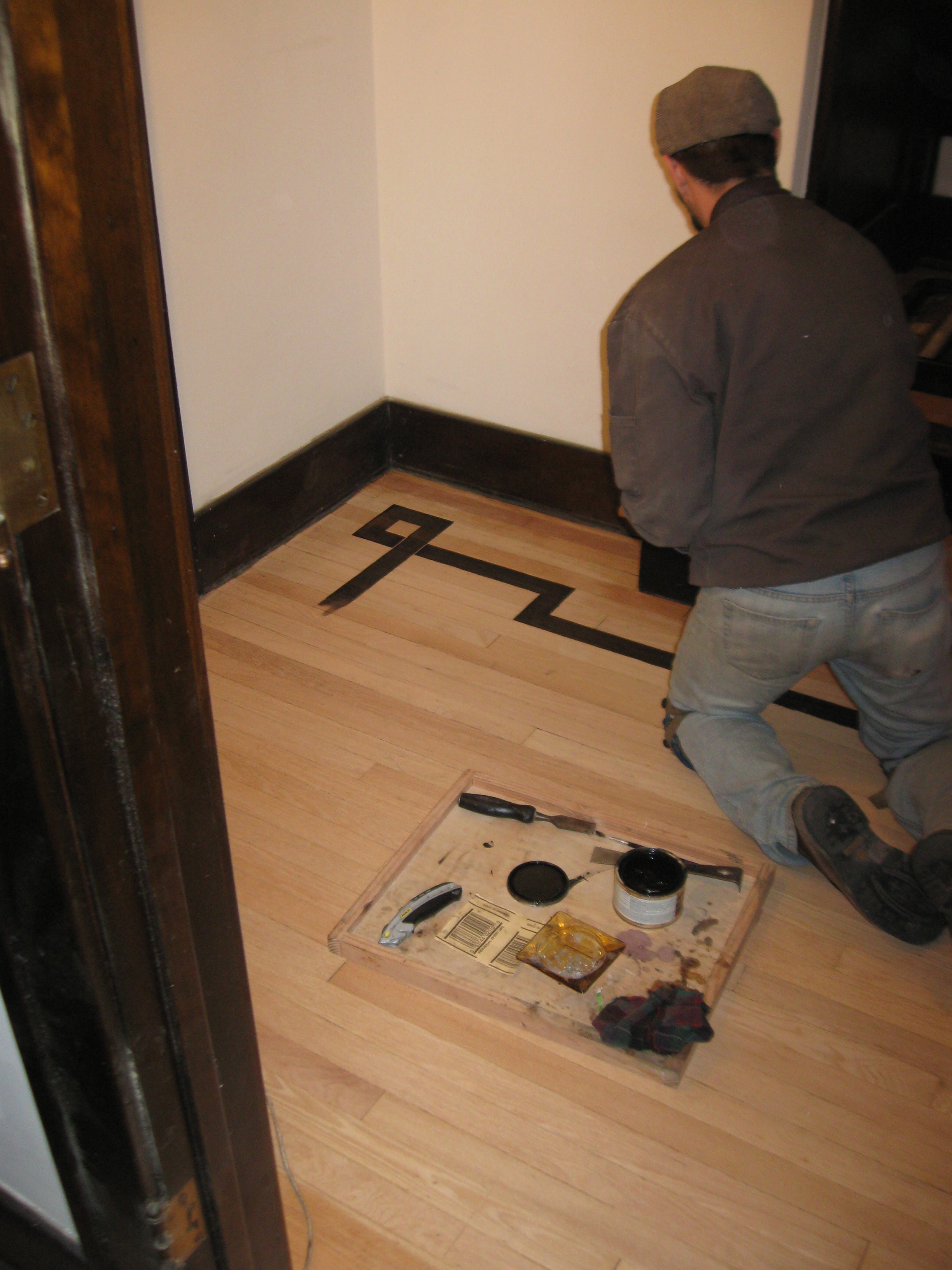 No inlays here, just a knife to score a v-groove (so the stain won’t run out), a straight-edge, square, ruler….