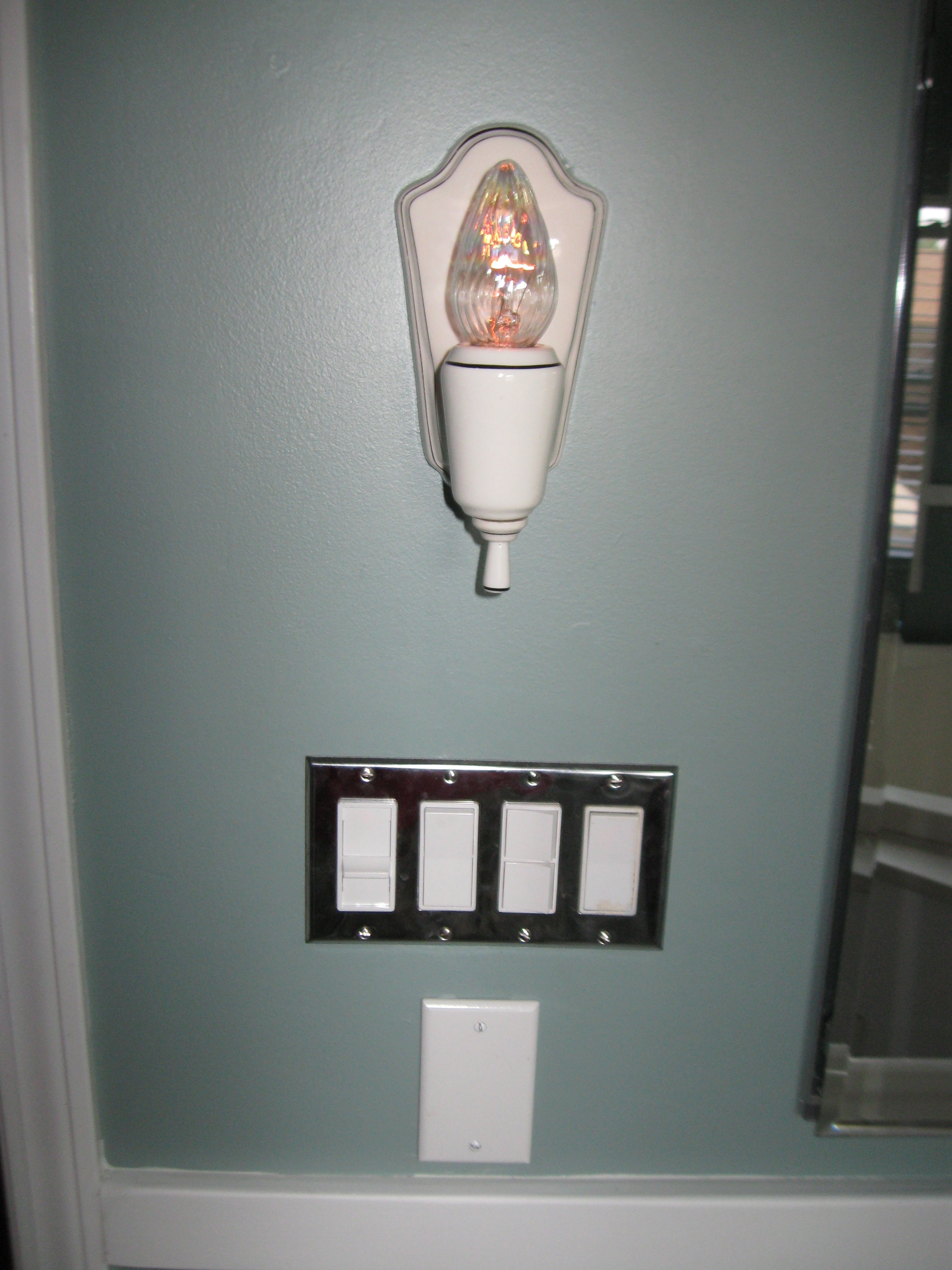 Steve’s collection of sconces will prove handy. Yes, the switches still work. Yes, we had to make a tool to get them apart and rewire them. No, you do not have to touch them……there is a switch on the wall.